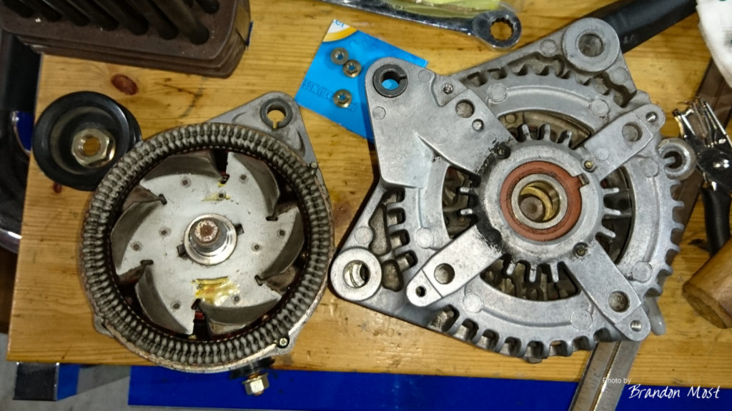 I removed the extra tab (it runs into the dipstick tube if you don’t) and reassembled the alternator.