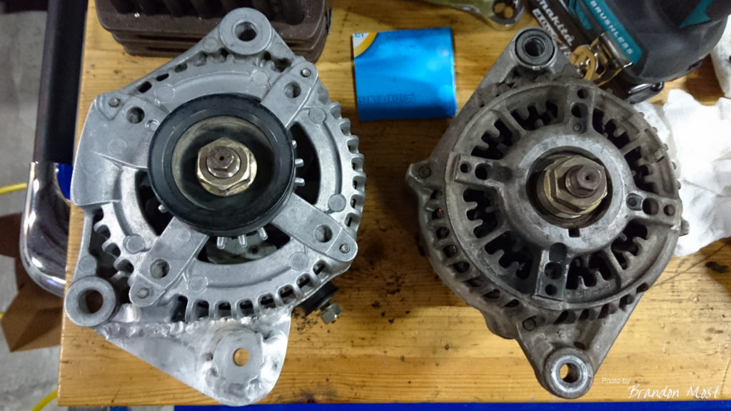 A little more searching found that the LS430 and SC430 looked to be a similar mount but bumped the output up to 130 amp. This might be worth it. I jumped on Car-Part.com and found a source for one locally. I ended up at $80 after they doubled the price with a “core charge” when I go there, but still not a bad price for the out put. Time to make it fit.