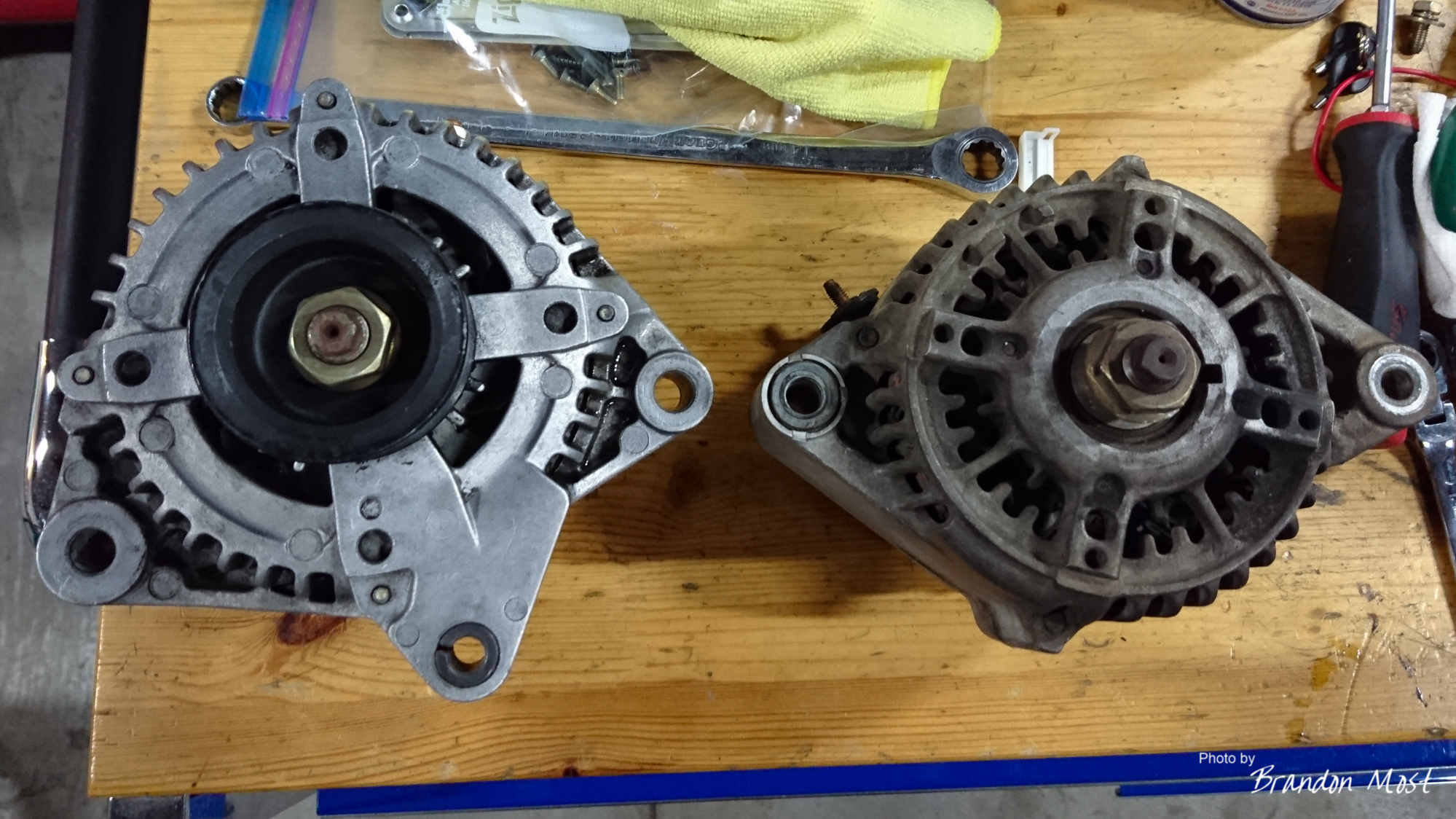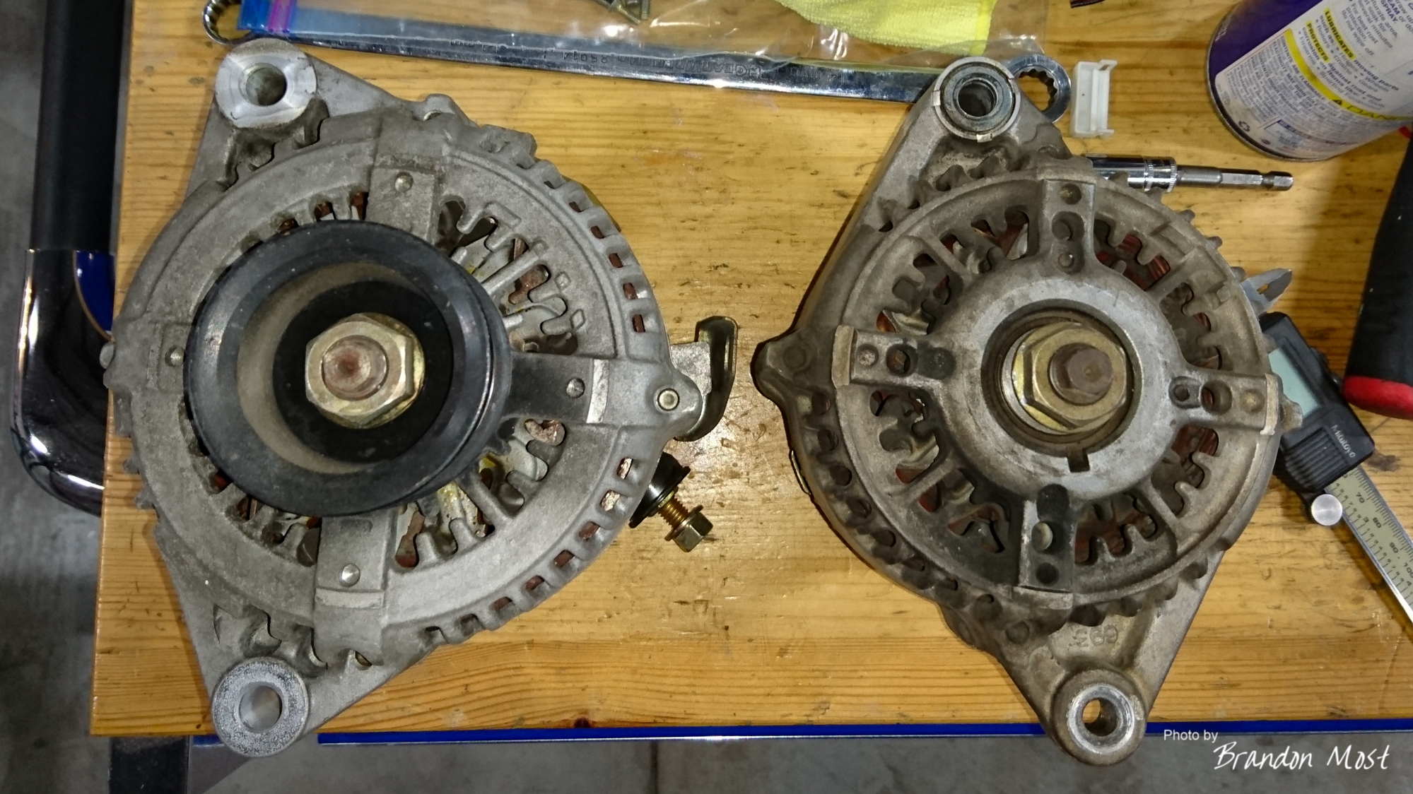 A little more searching found that the LS430 and SC430 looked to be a similar mount but bumped the output up to 130 amp. This might be worth it. I jumped on Car-Part.com and found a source for one locally. I ended up at $80 after they doubled the price with a “core charge” when I go there, but still not a bad price for the out put. Time to make it fit.